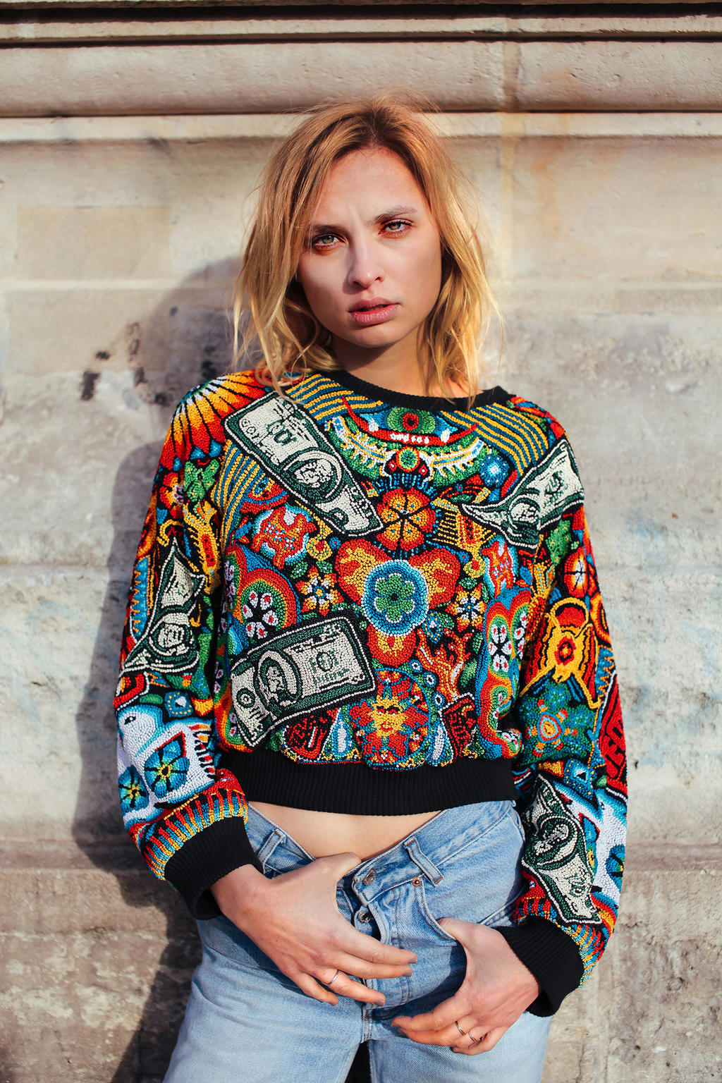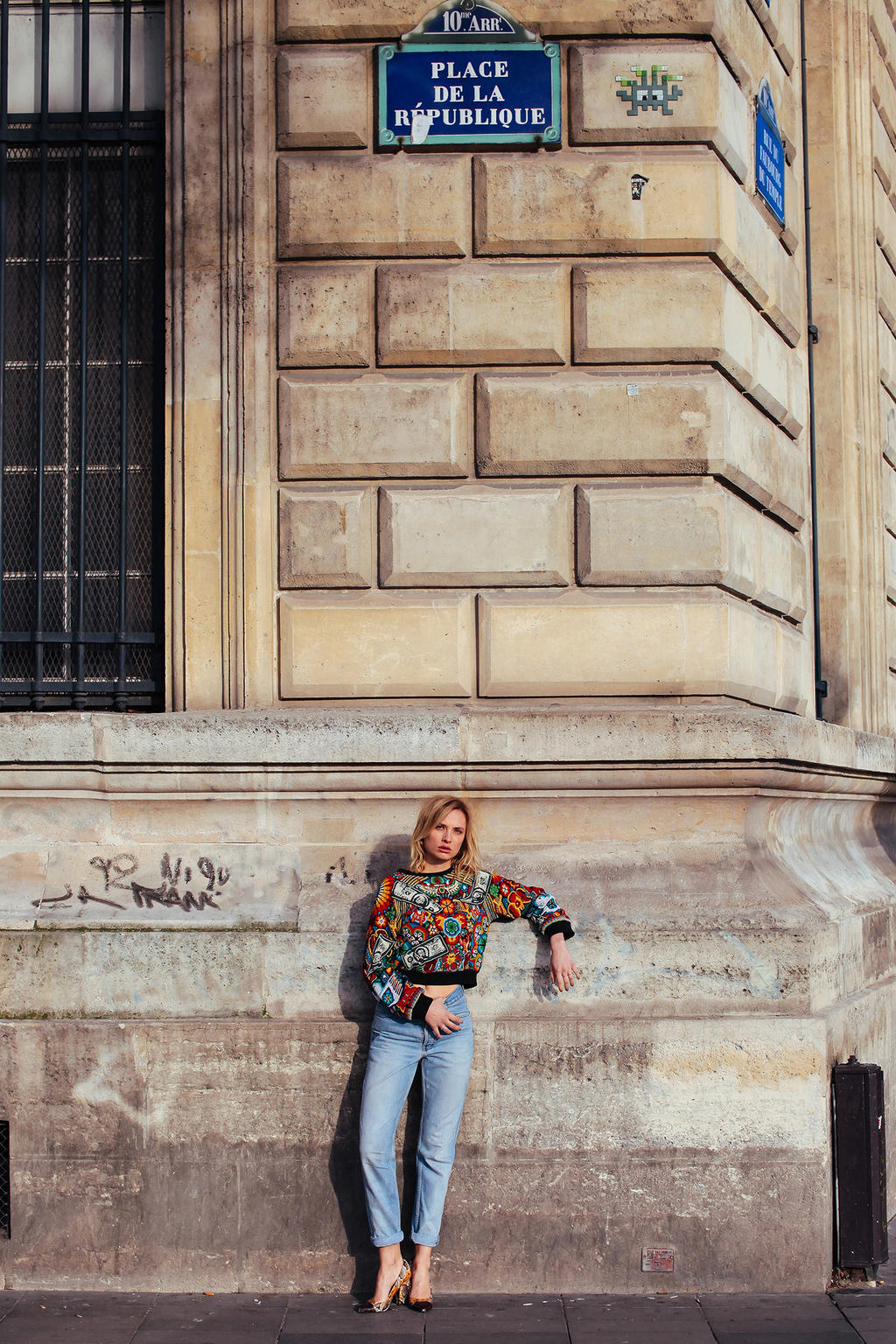 Hailing from Germany, this blue eyed, blonde babe was definitely heating up a chilly winter day in Paris. Craving a diet of multi-colour mixed with baguettes, we jumped on the streets of Le Marais to shoot this editorial.