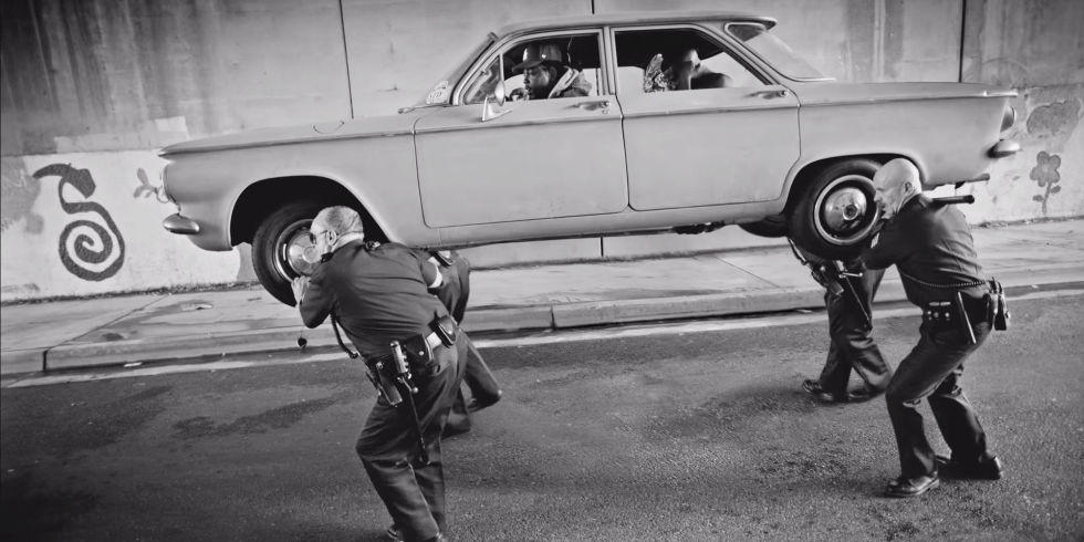 “Tell me who the bitch ni**a hatin’ on me? / Jumping on my dick, but this dick ain’t free / To Pimp a Butterfly another classic CD,” he spits while four policemen hold up the vehicle. Kendrick Lamar is definitely one of those rare artists who isn’t afraid to talk about what’s really going on in the world.