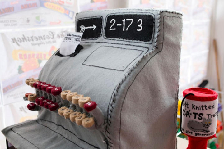 All your favourite products from the corner shop will be shown in a fluffy and toylike format. Chocolate, booze, candies, cigarettes, and even the cash register was made by hand by the talented Ms. Sparrow.