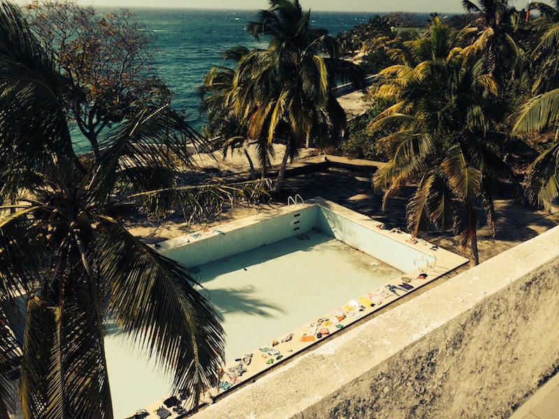The photographs are very impressive when you think that it used to have waterfront apartments, a palm court centered around an enormous swimming pool and helicopter landing pad; as well as 300 rooms for guests and partygoers, with even gold shower heads in the bathrooms. Now it’s just an empty silent island, difficult to reach with no running water and electrical power lines.
