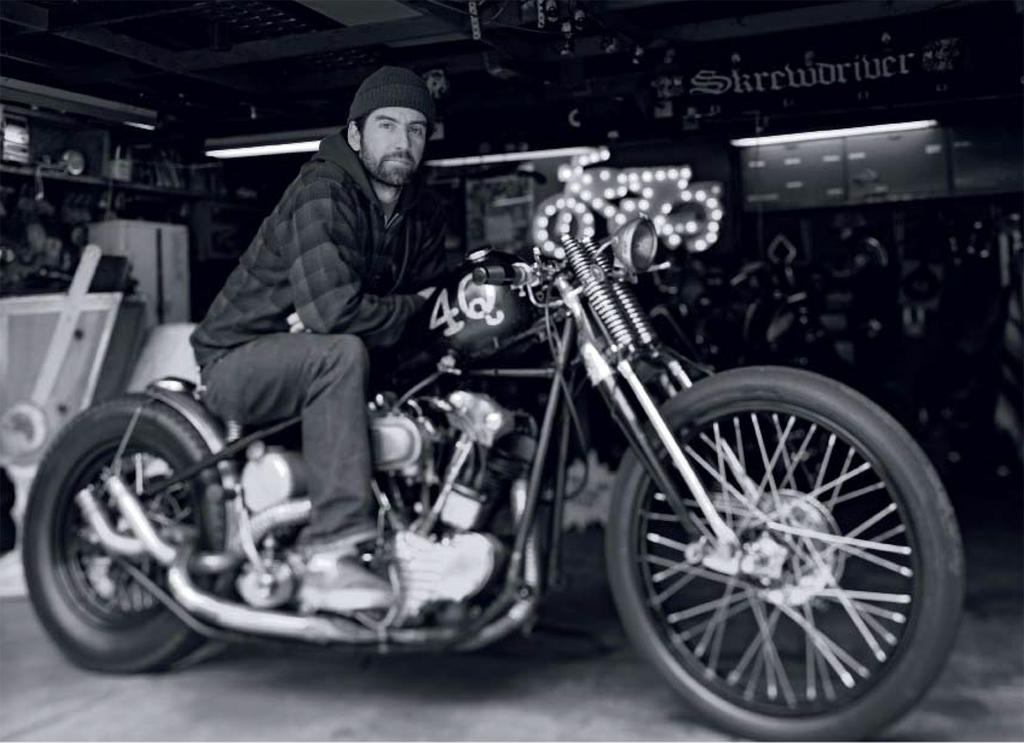 Max Schaaf is a respected veteran pro skater from Oakland CA well known for his thrasher style and vert / street mix of skills. He started pouring his obsessive energy into building custom choppers (motorcycles) from the late 40's through the 60's - most Harley Davidson pan heads / knuckleheads / shovelheads etc. He has earned a sterling global reputation in this custom motorcycle game - being hero worshipped in Japan for his skill.