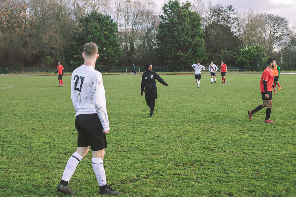 Being a girl is one thing, but I’m also visibly Muslim. I’m just there on the pitch, wearing my head-scarf. I think players often see me as a little girl too, because I don’t look my age. I come into a man’s world and tell them what to do. Sometimes I get respect, and sometimes you can see and feel their dominance. But if you get your job done and do things the right way, you get respect.