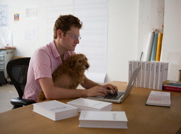 As each volume finishes uploading, the title is posted online. There will be a party when the entire upload is done, which Mandiberg estimated will take 11 to 14 days.
