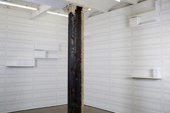 Mandiberg has started - on the 18th of June - to upload 11 gigabytes of very compressed data from a Mac Mini to the print-on-demand website Lulu.com. The upload is projected onto one wall of the gallery and for the printing, the gallery’s other walls have lined with wallpaper showing the backs of the first 1,980 volumes in the set, supplemented by 106 actual physical volumes, each of which runs to 700 pages. He will not, however, be printing all 7,600 volumes.