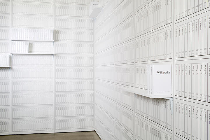 American artist Michael Mandiberg has decided to print – a part – of Wikipedia for an installation called “From Aaaaa! to ZZZap!” held at the Denny Gallery (NYC), to get a physical idea of how big it is. The goal was to transform the English-language Wikipedia into an old-fashioned print reference set running up to 7,600 volumes.