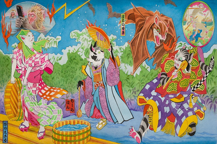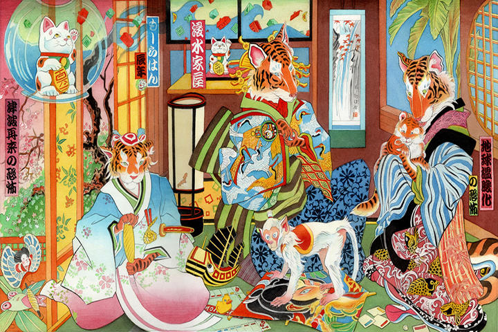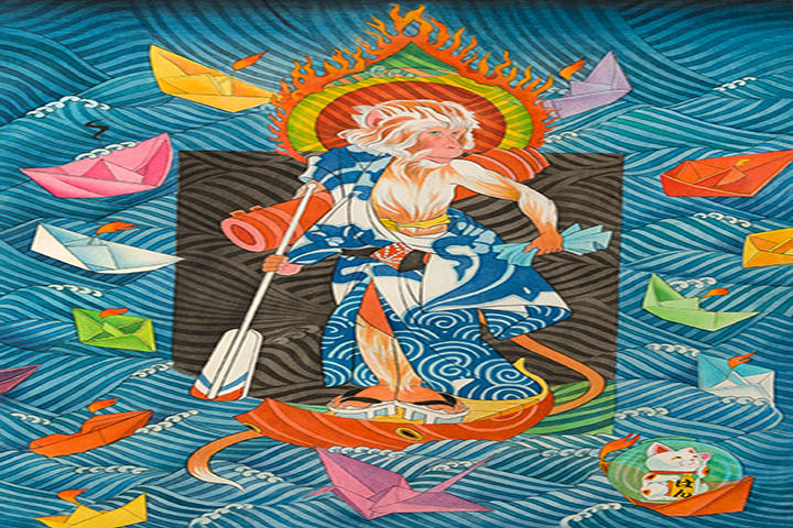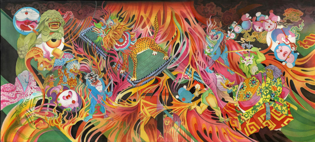 Moira Hahn celebrates the Chinese New Year with the “Night Of 100 Fire Monkey” exhibition at Gregorio Escalante Gallery in Los Angeles, running fom 9th April - 15th May. The exhibition depicts animals, mainly familiar creatures from Chinese mythology, in dramatic scenes of exuberant fun.