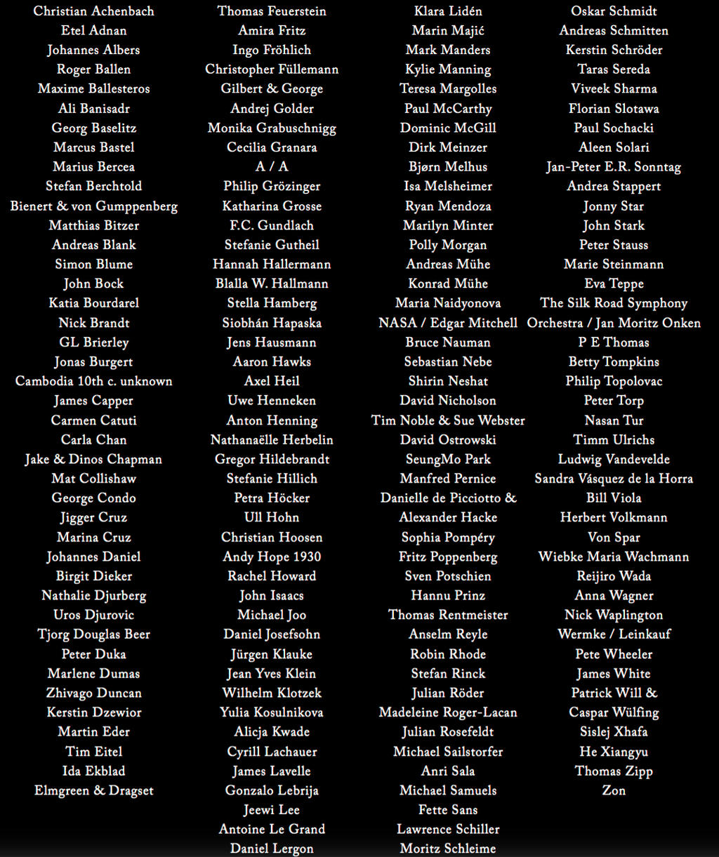 THE EXHIBITION IS INITIATED BY CHRISTIAN ACHENBACH JONAS BURGERT ZHIVAGO DUNCAN ANDREJ GOLDER JOHN ISAACS ANDREAS MÜHE DAVID NICHOLSON