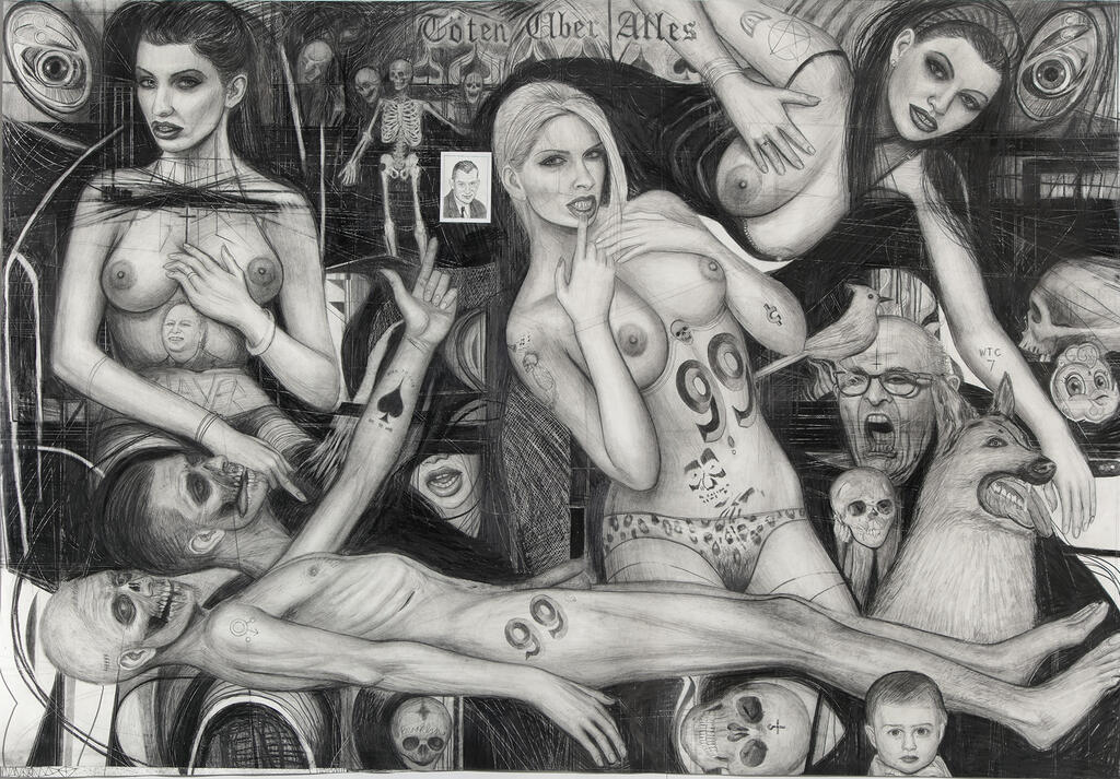 Brainard’s art is a hyper-evocation of reality. It’s a mixture of highly personal subjects with a venomous dose of our contemporary world. And as all good artists do, in the midst of celebrity cults, advertising, music and pop culture, politics and religion, he leaves the ability to interpret his drawings open for himself and his audience alike, at all times.