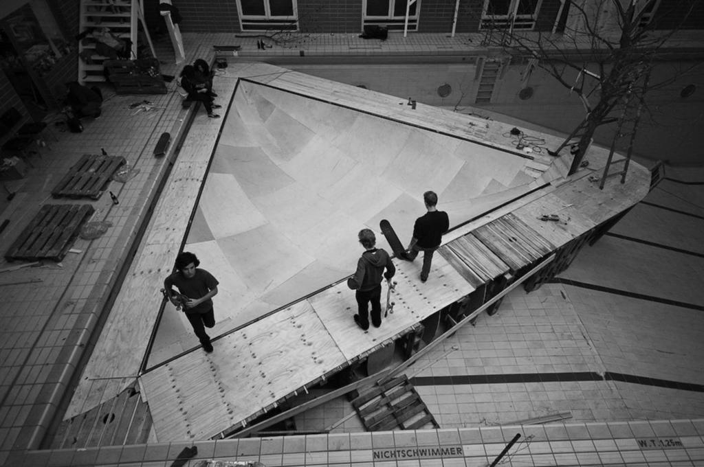 The planning part comes with surprisingly fresh ideas, the ex-trees come in custom shapes like waves, concave triangles, or even a giant puzzle piece. But it doesn’t end with big things made of wood you can skate, for example, they have built an awesome stage design out of old doors and windows. Take a moment off and enjoy the video and the exclusive photographs of their latest project: Building a complete house from the scratch in Bayreuth.