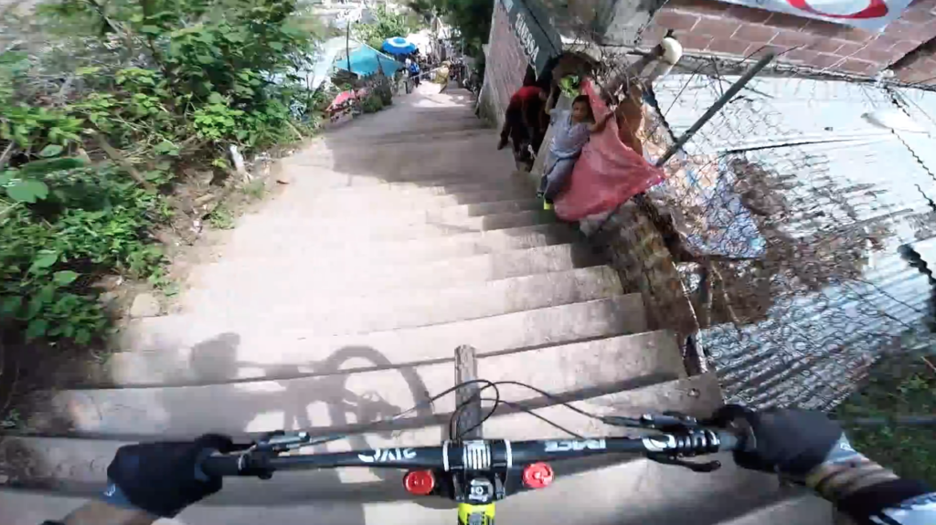 While watching the video you can feel the heavy breathing of the runner. He rushes down the narrow streets, allowing a total immersion into this confusing descent for the viewer.