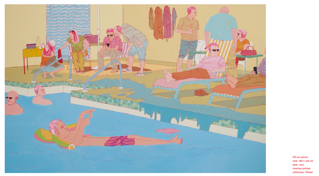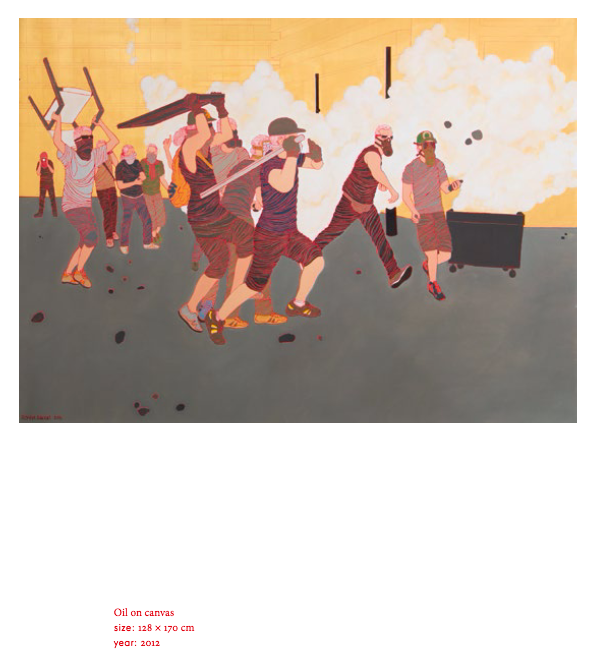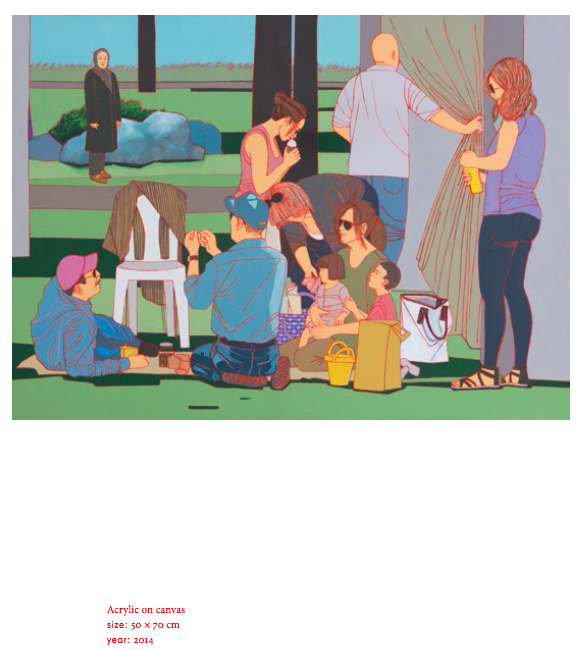Romisa Sakaki represents the uniqueness of the YPA generation of artists, whose works are characterized by progressive, outward-looking tendencies, energetic and powerful visual language and a shift toward universal and intimate experiences. She creates vibrant paintings, which tackle a variety of modern day phenomena. On the one hand, her works are socially engaged, depicting society and her urban surroundings in Teheran. On the other hand, she presents us with experiences that are relatable to young people everywhere, questioning universal themes of life in the city and the sincerity of human relations.