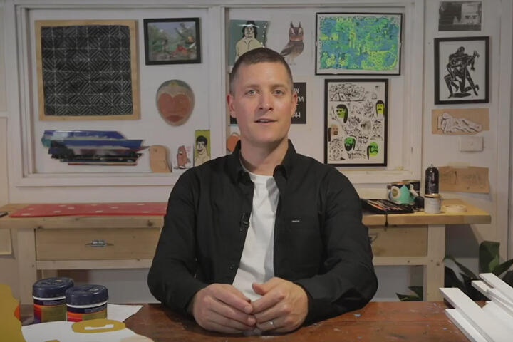 “Tom Gerrard and street artist AEON: their two careers have been existing side by side for a number of years, both exhibiting internationally and snapped up by art collectors around the world. Few people know that the two artists are actually the same person approaching the art world from two different angles and with two different styles. Tom Gerrard’s career has existed predominately in galleries in cities such as London, Paris, Berlin, Barcelona and LA. He also hosts his podcast Bench Talk where he interviews artists and creatives about their careers.“