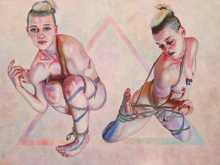 The paintings of English artist Sarah Muirhead deliver heavily detailed snapshots of reality, but she also always adds just enough poetry to it to start a discussion about human sexuality.