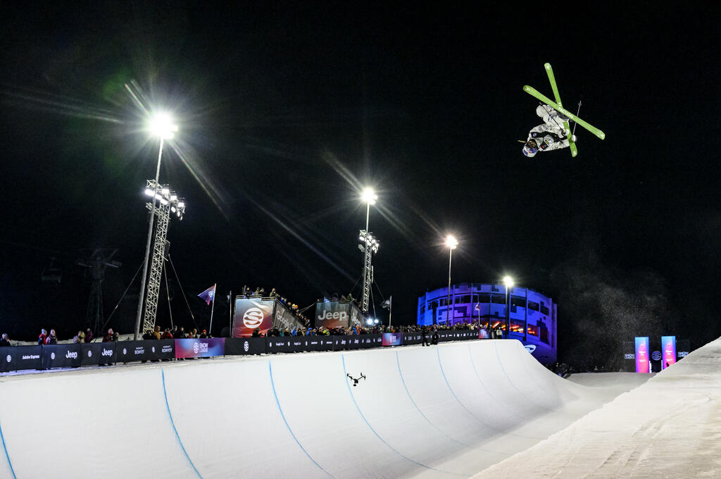 Superstar Eileen Gu shined with elegance, style, and technical skill at the first Snow League halfpipe night event, winning the freeski contest in LAAX and the title of the first Snow League World Champion in Halfpipe.