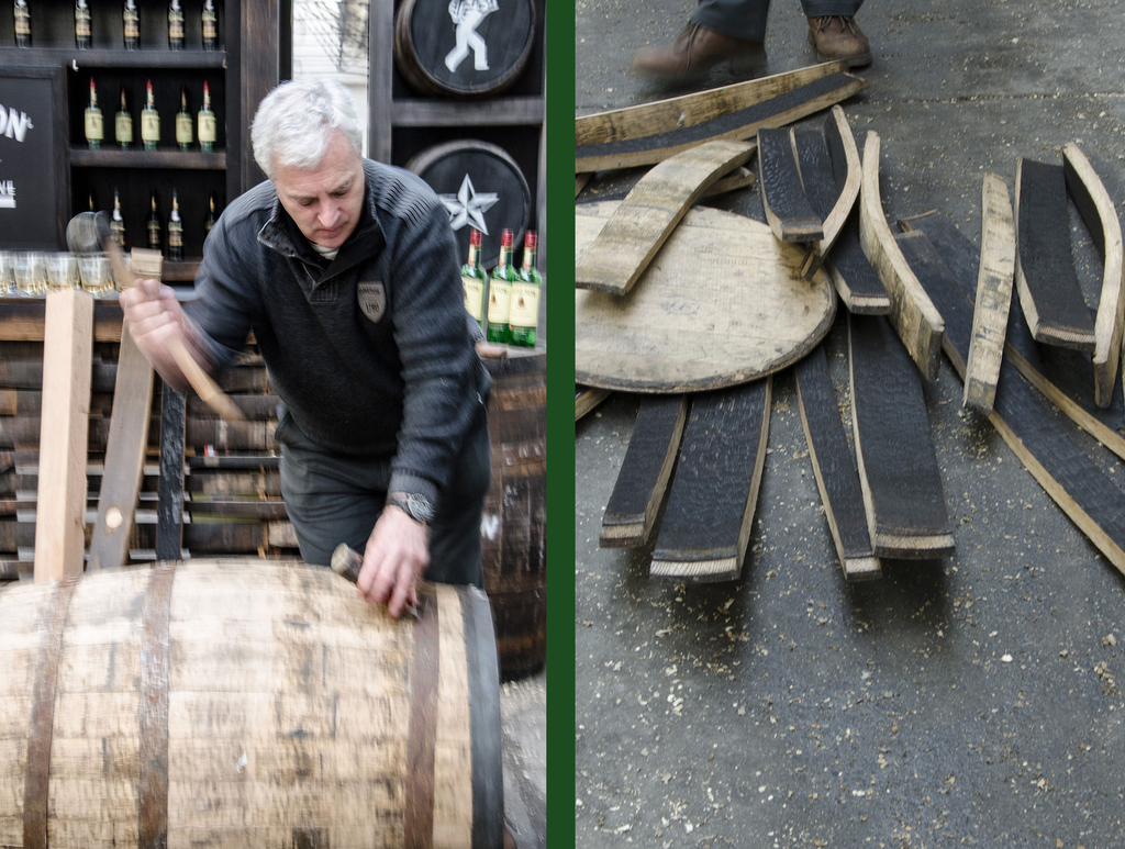 But before the drinking started we went to go visit the legendary cooper Ger Buckley, noted craftsmen with hands that descend from a lineage of master coopers. Nothing like witnessing first hand how the artistry of casks making happens. Ger explained, that you can make the best whiskey barrels from white oaks, but it depends where the tree had it's roots. American oak gives a vanilla sweetness while european oak takes a nuttier, spicier and more distinctive taste to mature the gold. Essentially the timber needs to be cooked so caramelizing of all the sugars can be released into the whiskey. By all means this is not an easy task making casks! But to a master like Ger it's like blinking an eye. Although these days he spends them inspecting and controlling the 850,000 casks at the Jameson Middleton Distillery. Not much time for banging that hoop hammer so it was amazing to see this old technique that has been practiced since the very first century.