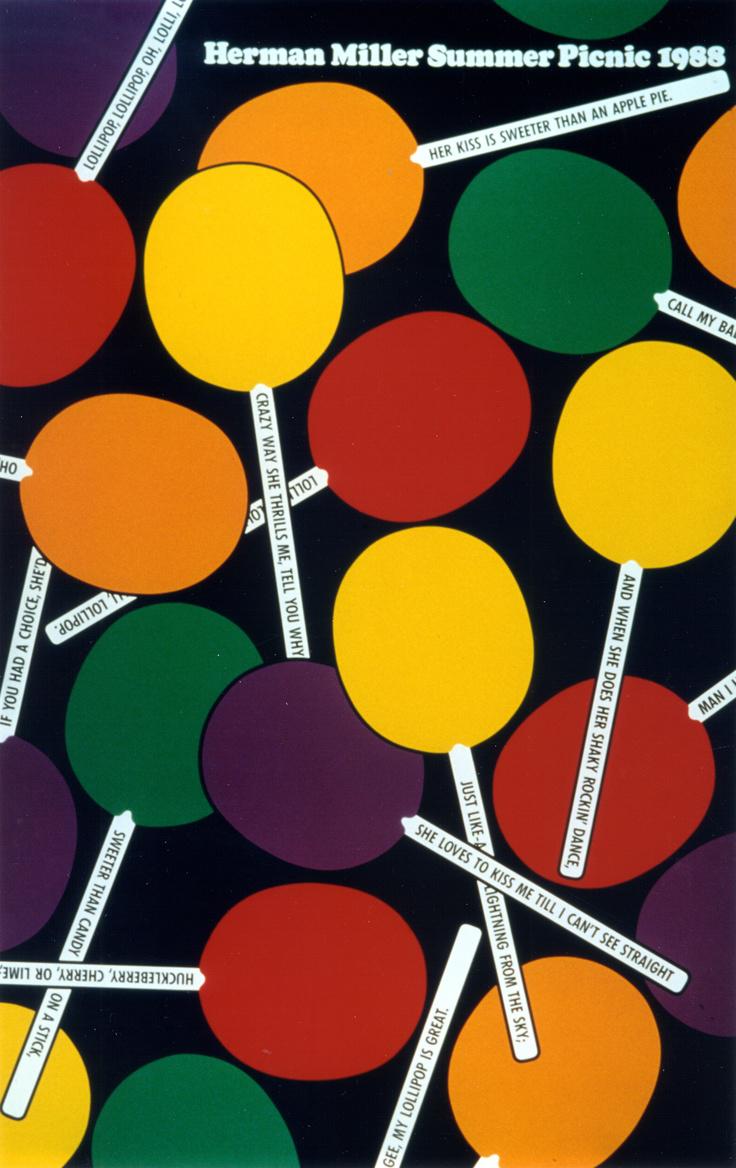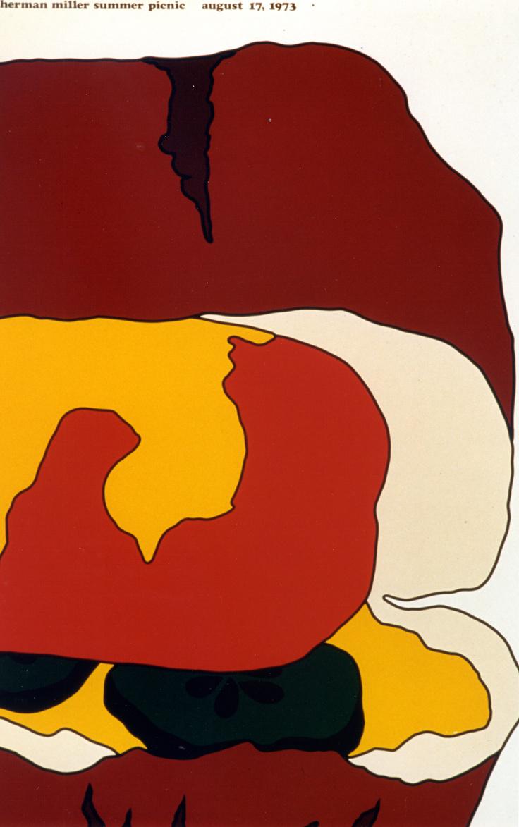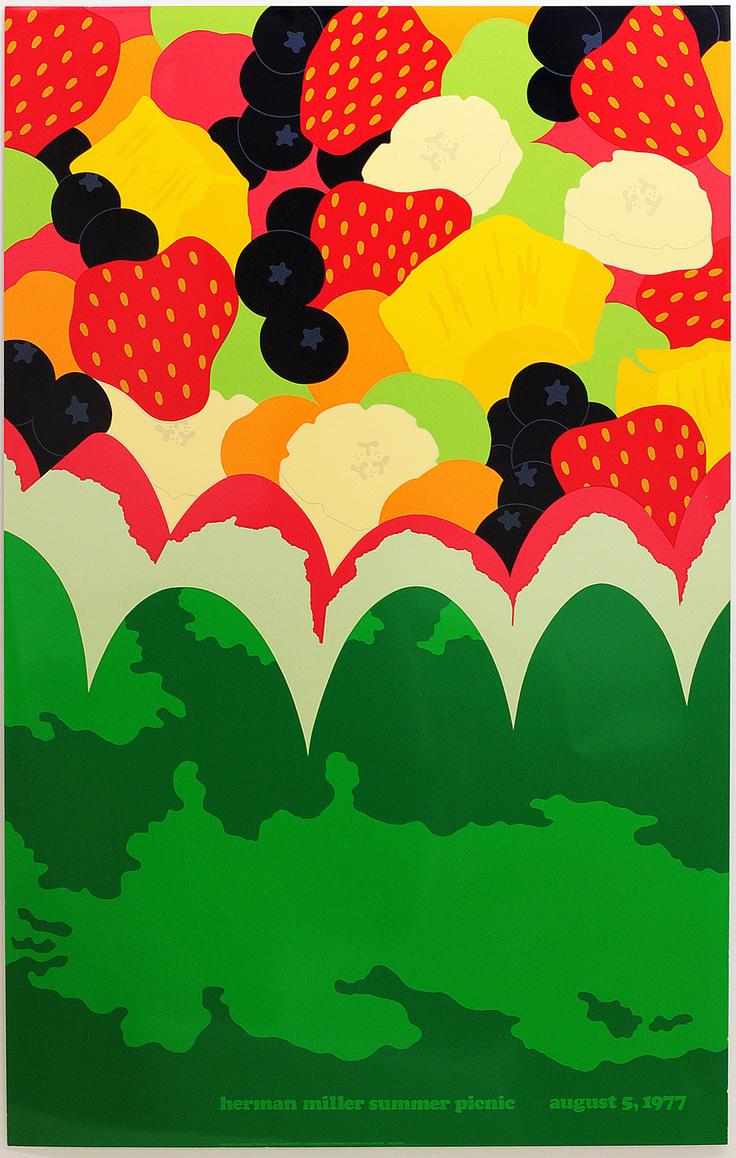 Steve Frykholm started as an artist in the 1970’s by creating this kind of posters’ events to spread and promote the annual picnic of his company, the well-known Herman Miller Furniture Company.
