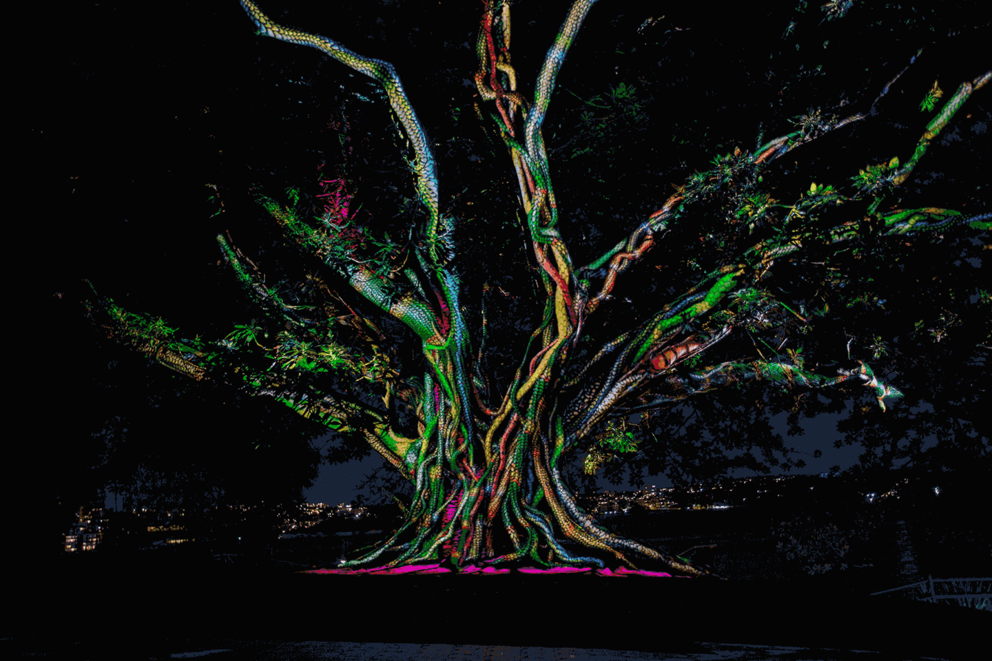 “One of the main challenges was to get a seamless projection mapped across almost 360 degrees of the tree surface, which is much more complex and organic to a building facade.” Julian Reinhold