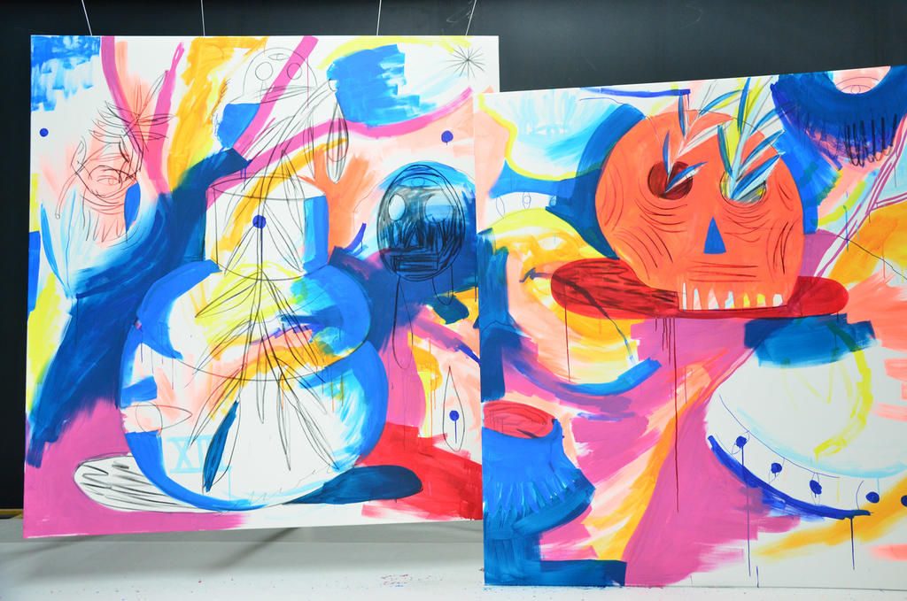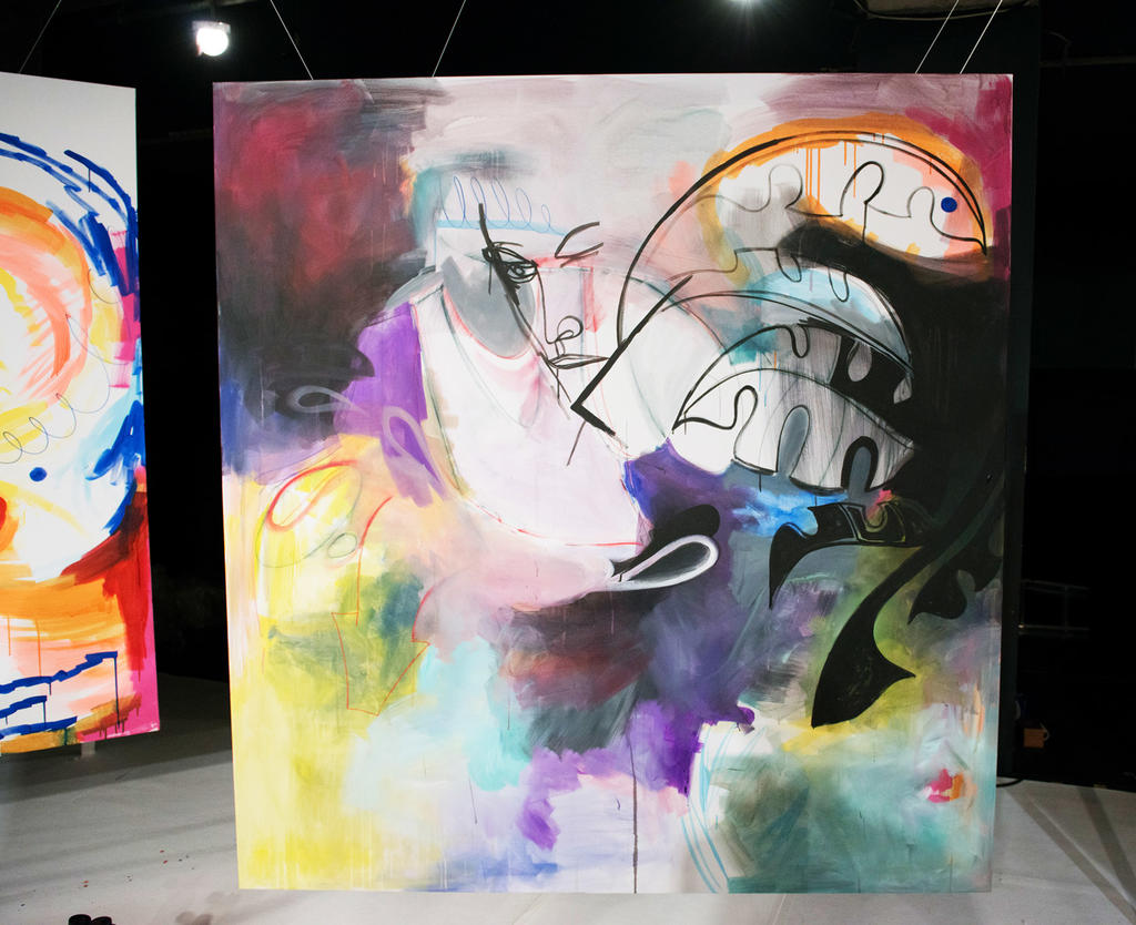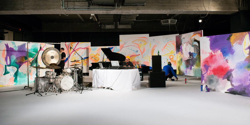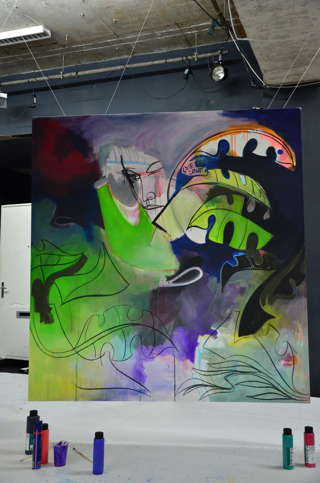 a dream come true. I wanted to bring music and painting together for a long time, as I mostly listen to music while painting and love the way it can bring me in a state of consciousness and/or peace. It helps me to disconnect with the side of my brain that is judging too much to paint more freely. Getting your favorite people to have fun together is magic. As everything fell in place, from schedules to funding, we were able to put the show together in a very fast way. I’m very happy how it played out and that everything went well aka as unplanned.