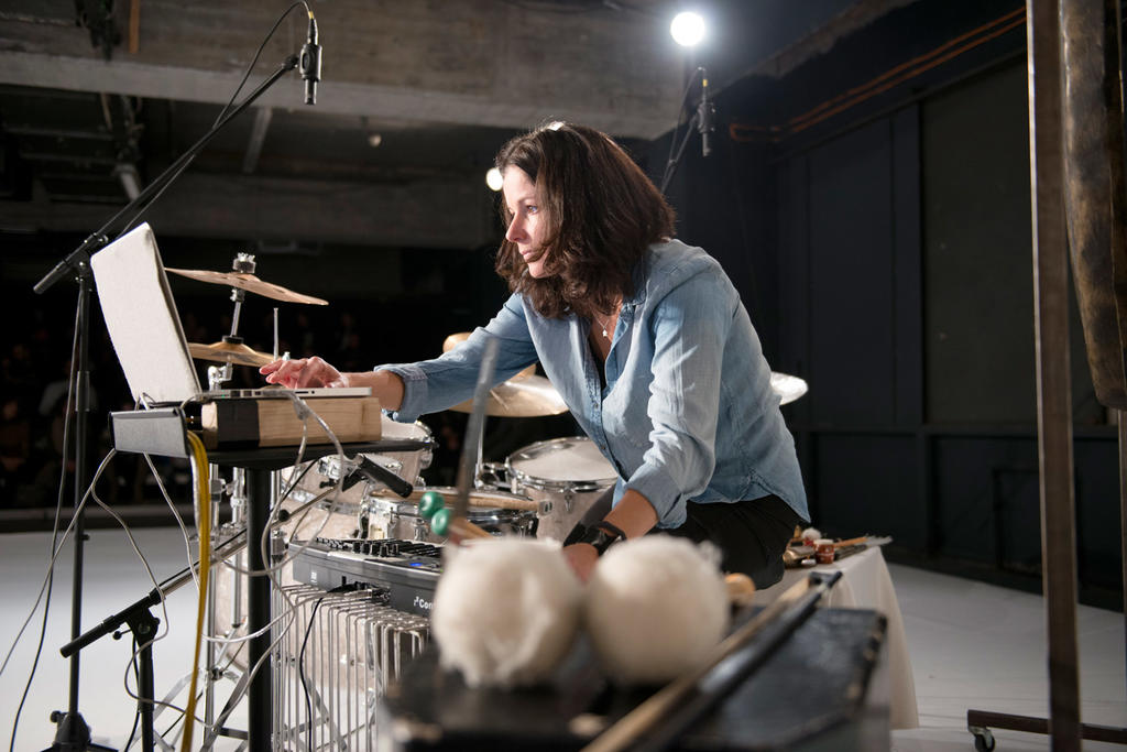 The drumming/percusion skillset of Almut is incredible and I’m lucky to be familiar with her work for over 10 years, as she’s one of the main musical contributor to the Constanza Macras / Dorky Park dance theater. She has a broad repertoire of music directions, but most importantly she’s able to improvise on the spot… Which was the whole idea for this evening.