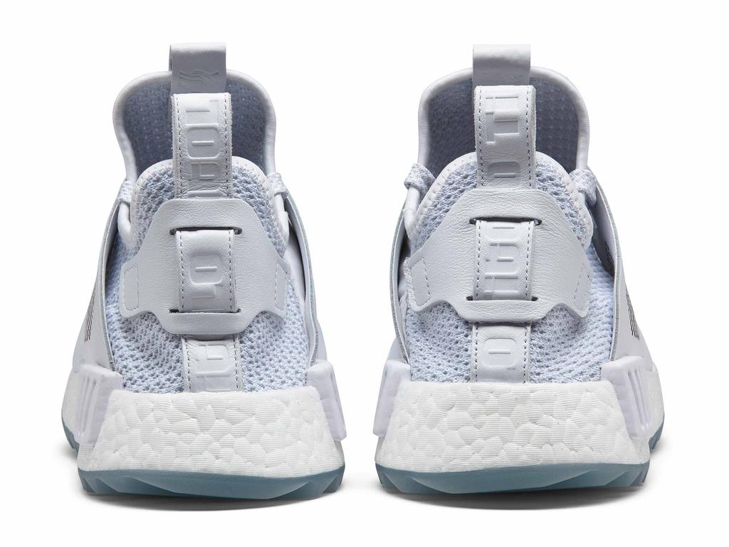 Mountainous patterns are further echoed in the textured structure of the BOOST™ midsole. The outsole, the only part of the shoe that is not white, summons the image of an exposed glacier. Millions of years in age, wondrous, translucent and impossible to explore beyond the surface, it is a smart and evocative source of inspiration for the rarely-seen underside of a sneaker.