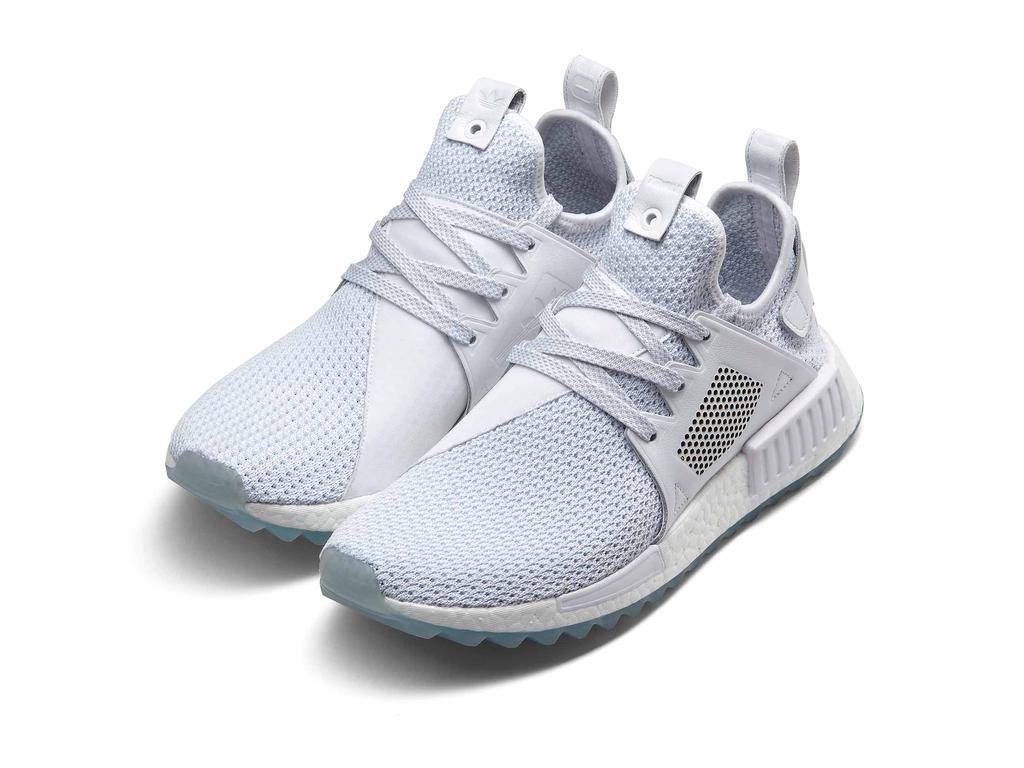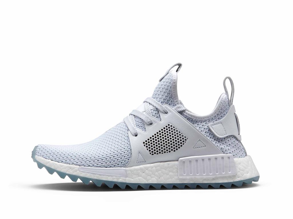Zurich, March 2017 - adidas consortium and Swiss footwear powerhouse Titolo collaborate on a fresh, icy NMD. With stores in Zurich, Bern and Basel, Titolo has looked to the region’s dramatic outdoors to create a sneaker inspired by alpine snow zones and hidden glacial phenomena. Upon casual inspection, snowscape is a plain blanket, a vast, one-tone expanse of white. But pan out above the mountainside and patterns begin to emerge. The outermost layer of powder shifts, forming tessellations and sweeping, ever-changing corrugations on the surface. The Titolo NMD XR1 Trail reflects this landscape via a loose gauge pattern in the sneaker’s Primeknit upper and perforated leather details, while the asymmetric overlay resembles a snow coated ridge in the sunlight.