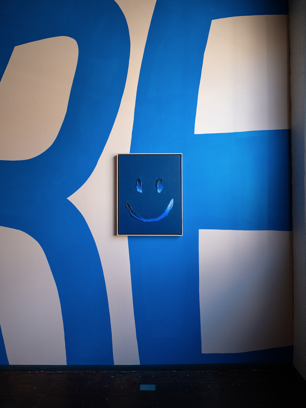 In my work I use the smiley face in various ways… It's my way of injecting feeling, and thoughts about emotion… and my way of creating a figurative abstraction in the work… and injecting a bit of personality. I try and fuck with it as much as possible to demonstrate the different moods of what I'm trying to talk about. I inject different emotions into the icon… It's not always designed to be the classic smiley, happy face…