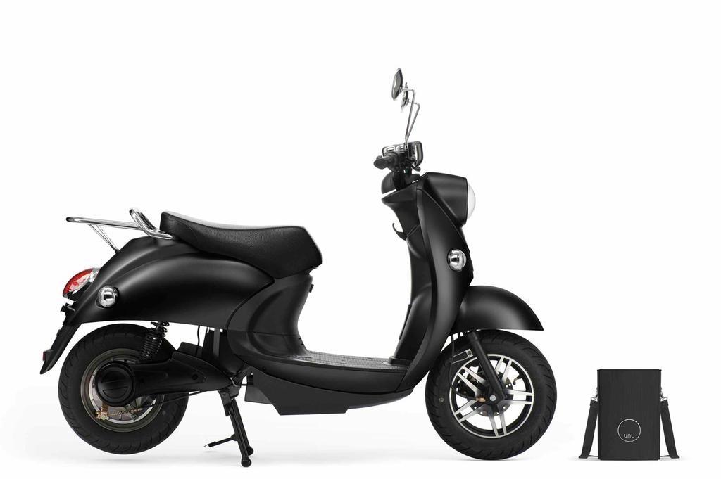 * The portable power pack can be easily recharged from any ordinary household electrical outlet. Anyone with an ordinary license to drive a car or moped is allowed to drive the unu scooter, which has a range of more than 50 km with one battery or 100 km with two batteries.