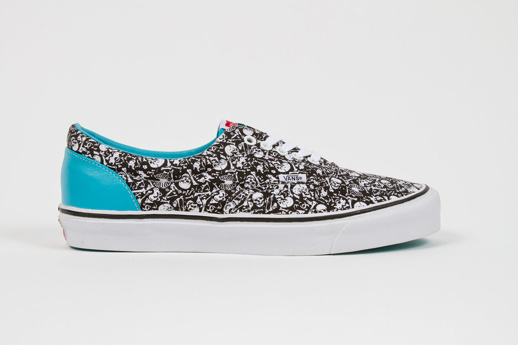 The Stüssy Bones print first debuted in 1988 and resurfaces this season as a collage pattern on the OG Era LX. Influenced by the '80s skate scene, the allover motif reemerges in its original black and white form over the toe ramp and midfoot of the retro low top. Contrast coloring at the ankle counter and lining put the final touches on this special color-up of the OG Era LX.