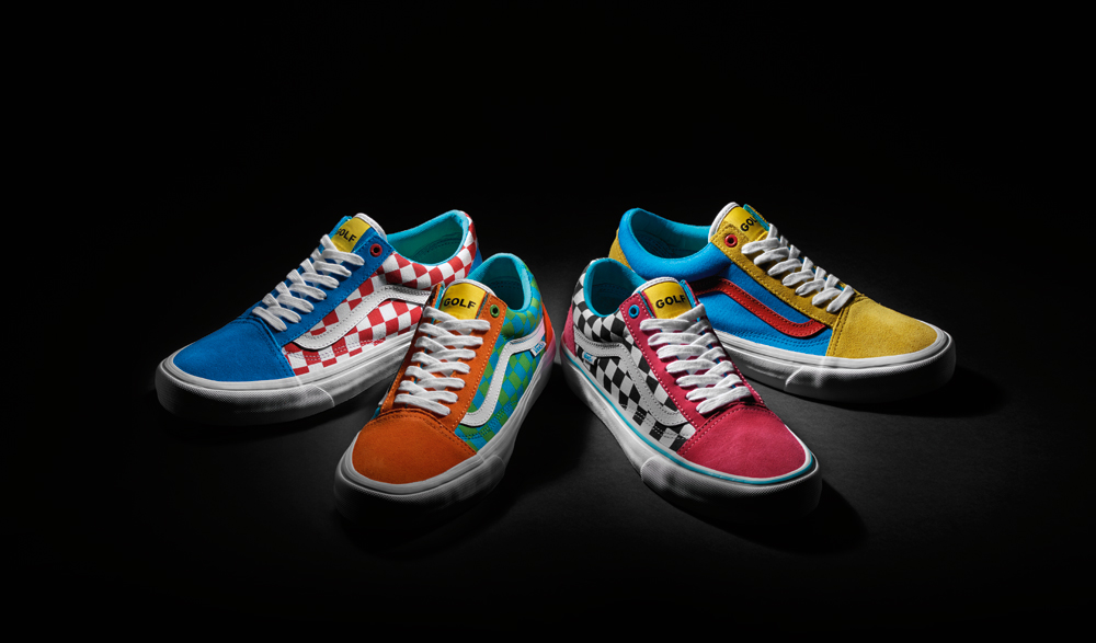 The Vans Pro Classics x GOLF launches on August 29 in the US of A and on September 26 in the R of the W. It will be available exclusively at selected Vans Pro Skate dealers.