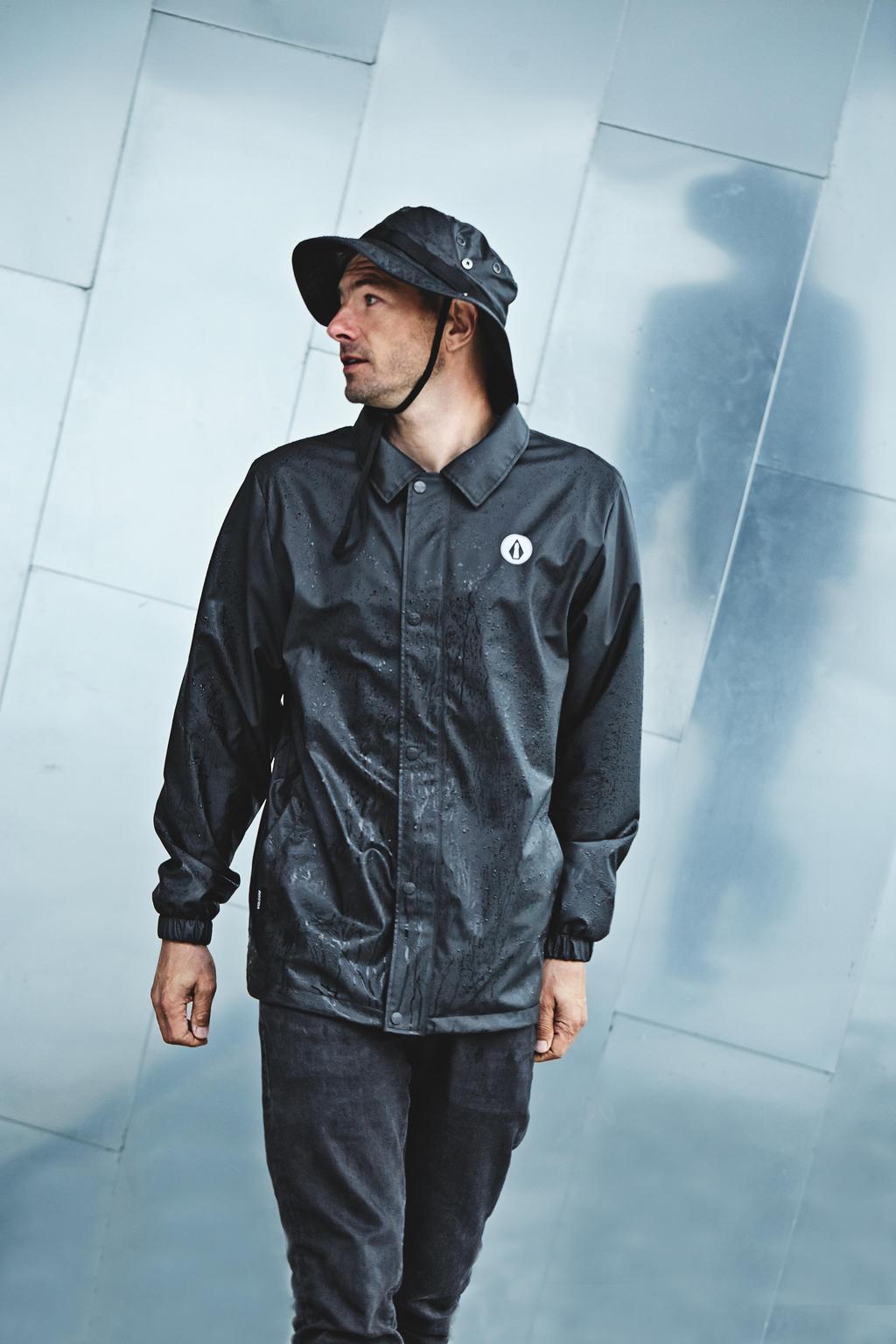 Skatewear meets Rainwear while blue skies can turn quickly into an dark armageddon. Californian brand Volcom joined forces with the Danish brand RAINS to save you from harsh conditions with a jacket and hat, that inherit the weatherproof functionality of Rains. Danish skateboarder and Volcom team rider Rune Glifberg was the perfect choice to reperesent the collection in a dynamic lookbook and video that was shot in Copenhagen, Denmark.