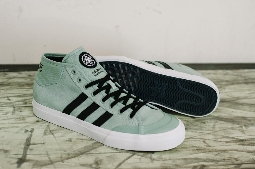 The second collaborative effort of adidas Skateboarding & Welcome Skateboards brings a limited-edition Matchcourt shoe and jersey to the table. The enhanced Matchcourt Mid silhouette features a seafoam blue, premium suede upper, custom art, tonal slate rubber toe and a semi-translucent gum outsole. The Welcome Skateboards trademark owl and familiar quirky design notes are featured on the jersey.