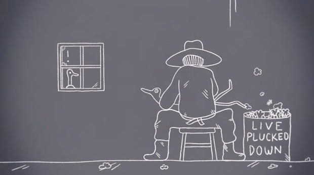 Geoff McFetridge recently created an animation for Patagonia to promote awareness of the brand’s humane process of obtaining goose down.