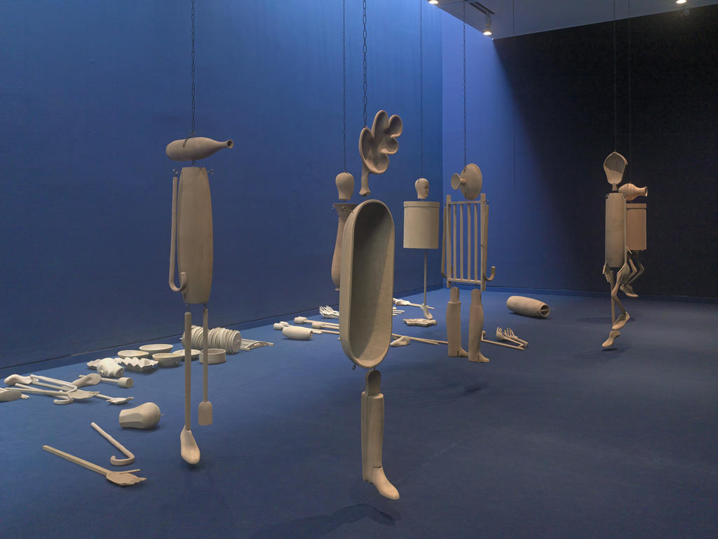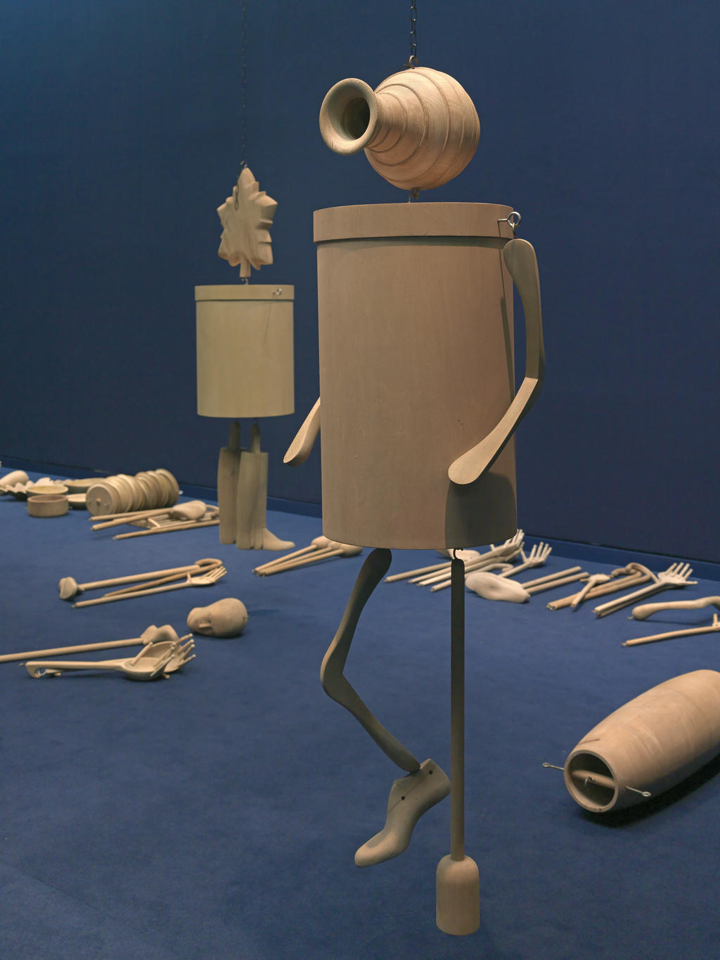 Especially for the "Labor" of the K20, this artist – who received the prestigious Goslar Kaiserring in 2014 – has created her latest work Der Traum der Dinge / What Things Dream, which incorporates the visitor directly into the work. For this installation, Siem (who was born in Kiel in 1954) spent months assembling wooden objects old and new. These simple household intensities utensils are known to all of us from family life or through daily use: basins, old washboards, walking sticks, spoons, shoe lasts.