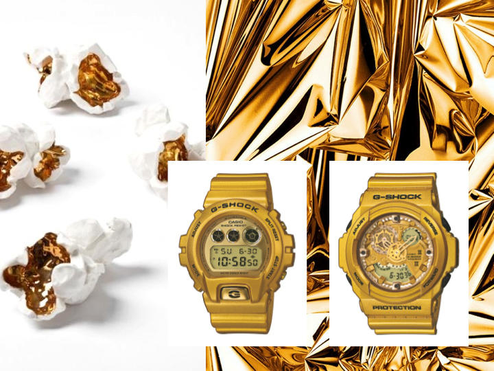 The Gold Series watches are based on the earlier G-SHOCK GA-100,GA-110, GA-200, and GA-300 models which featured a mechanical-design watchface combining analog and digital features in a large case, and the globally popular G-SHOCK DW-6900 models with a rounded shape.
