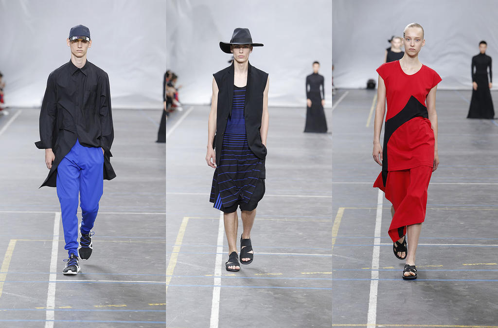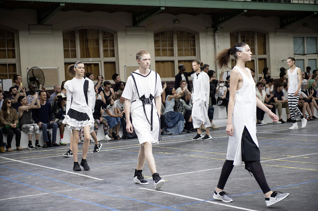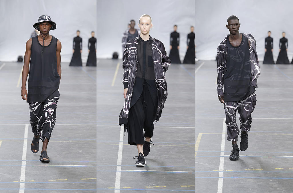Y-3 just previewed their Spring/Summer 2016 collection, focusing on motion and sheer movability. Yohji Yamamoto himself mentioned that he's not interested in fashion, but in how the clothes can be cut. I think you can feel his urge to re-invent things when looking at the collection and get a glimpse of the kinetic grace with sheer, fluid, ultra-light pieces designed to move.