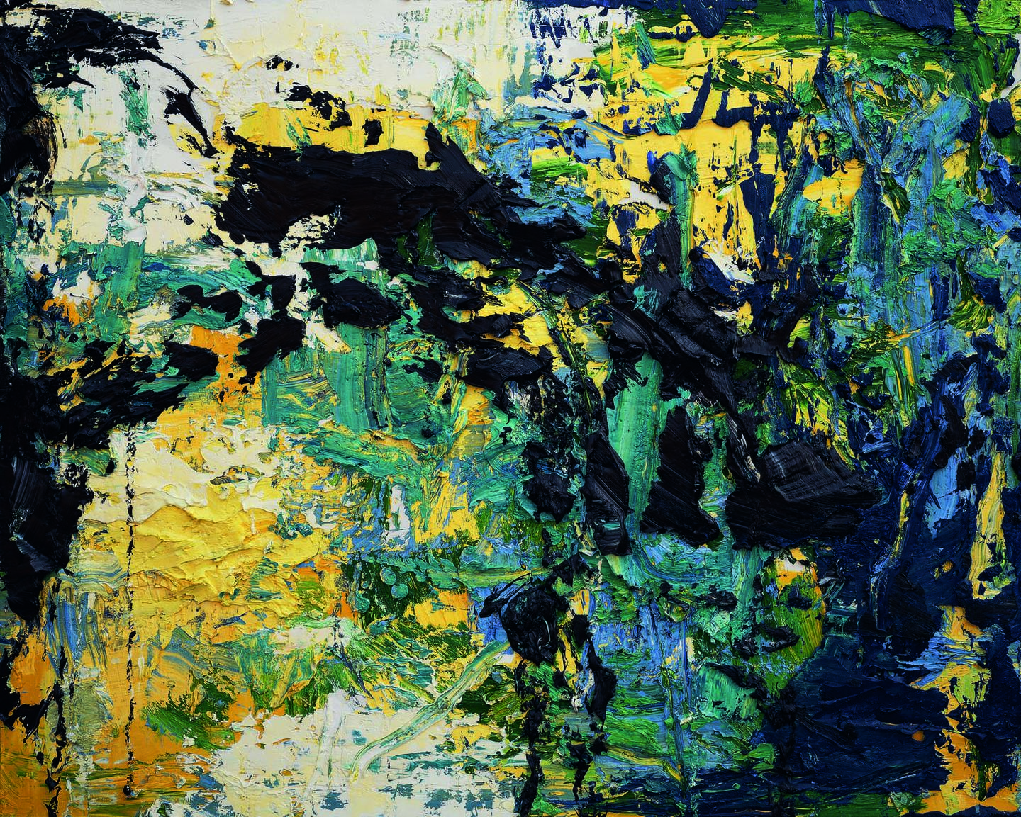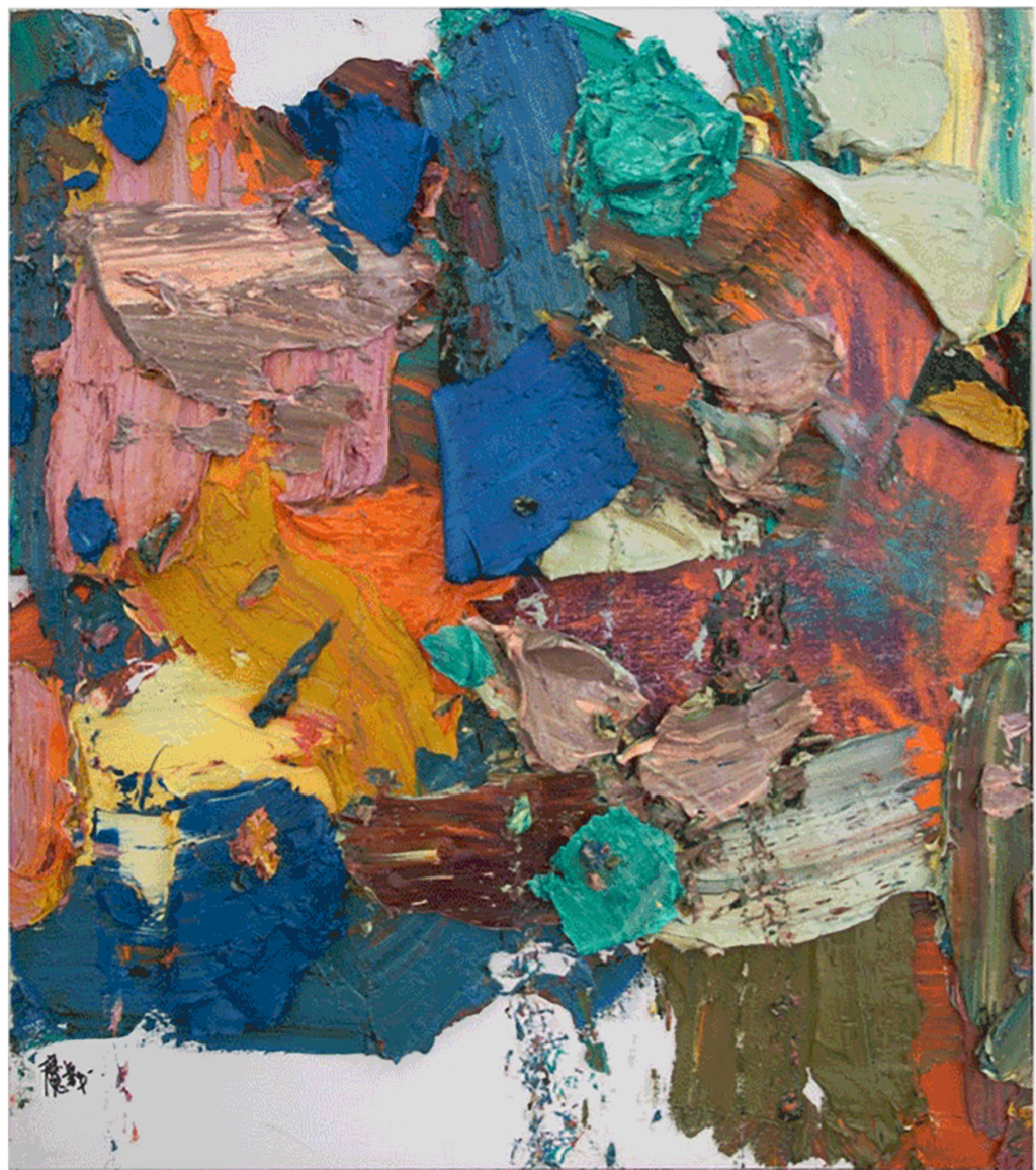 (1) Zhu Jinshi, Volcanic Rock (detail), 2010 Oil on canvas, 55 1/8 x 63 inches, Courtesy of the artist and Blum & Poe, Los Angeles/New York/Tokyo