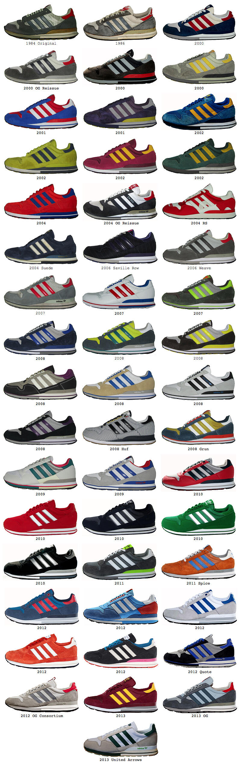 The ZX running shoe series was designed for runners when it launched in the 80s and numeric designations were initially given to each shoe, starting with the ZX 500 and ZX 800 in 1984 and 1986, and moving up to the ZX 4000 and ZX 5000 in the late 80s.